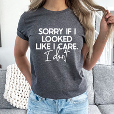 "Sorry if I Looked Like I Care I Don't" Graphic Short Sleeve T-Shirt