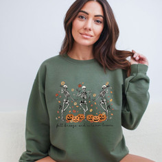 Women's 'Fall Breeze and Autumn Leaves' Skeleton Graphic Sweater